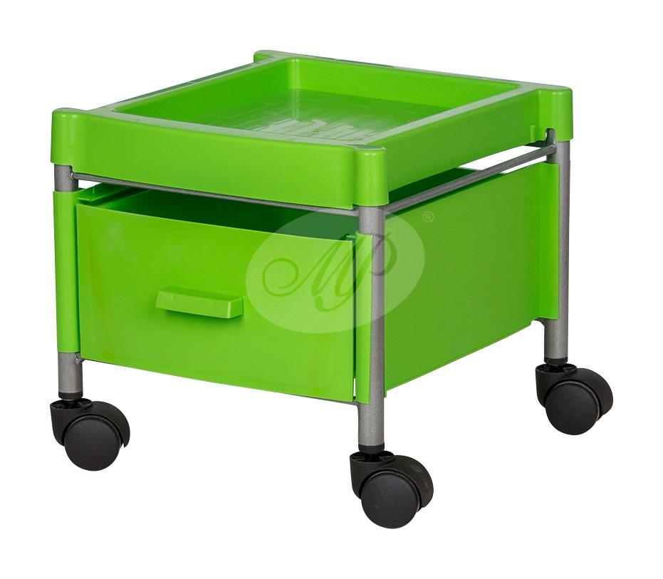 Каркас: металл с защитным слоем от коррозии и влаги Боковые стенки: пластиковые Крышка: из ударопрочного пластика Ящик: пластиковый Колеса: из качественного пластика Цвет: белый, черный, фиолетовый, розовый, зеленый, серебристый. Маневренная тележка для инструментов ALINA1– компактный помощник для мастеров. Такое педикюрное оборудование поможет держать все необходимое под рукой. Удобная тележка для педикюра не имеет лишних деталей. Оборудование идеально подойдет для небольшого помещения. В ящике достаточно места для инструментов первой необходимости. Крышка с отверстиями предназначена для приспособлений и расходных материалов, необходимых во время процедуры. Для легкого и быстрого перемещения по салону в тележке предусмотрены маневренные колесики. Каркас тележки – стальные трубки, надёжно защищённые от коррозии и влаги. Боковые панели, крышка и ящик выполнены из ударопрочного пластика. Материал легко очищается с помощью моющих и дезинфицирующих средств, не деформируется при случайном попадании косметических веществ. Колеса из качественного пластика не оставят ни единой царапину на полу помещения.