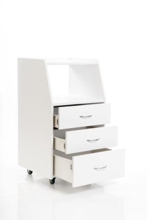 Отлично впишется в небольшое помещение. Оснащен тремя выдвижными ящиками и открытой полкой, на которой удобно встанет маникюрно-педикюрный аппарат.