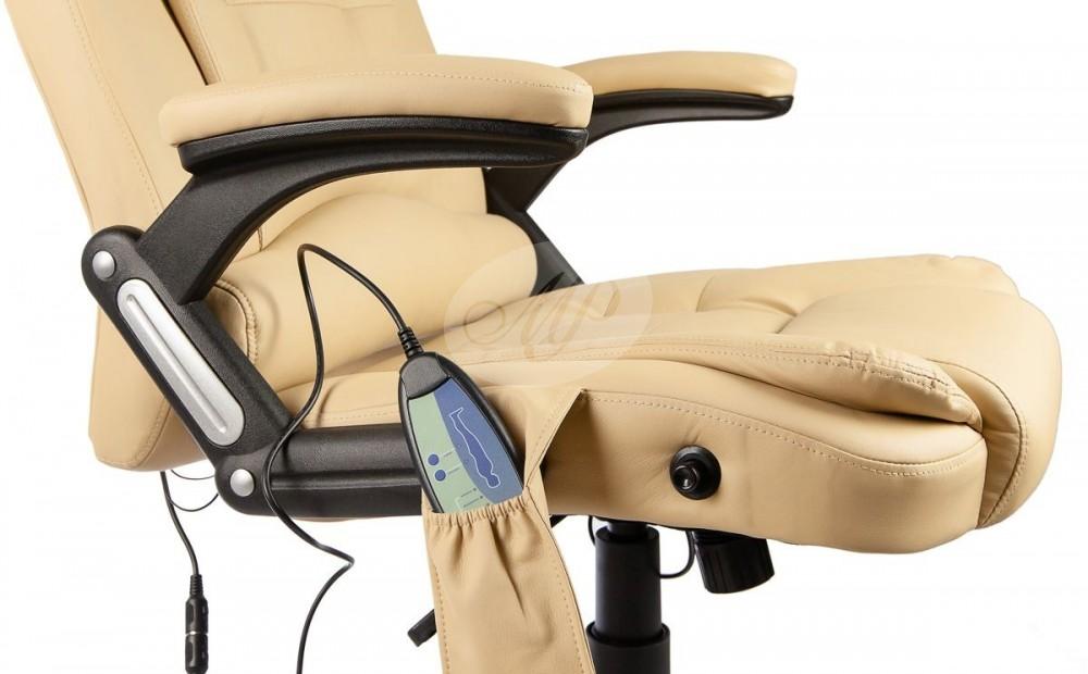 Это кресло должно быть в каждом офисе! Работать в таком кресле — сплошное удовольствие. Функциональное, элегантное, оно украсит любую комнату. Функция массажа и наклона спинки делает это офисное кресло прекрасным дополнением к вашему рабочему пространству. Такой эргономичный предмет мебели обеспечит вам комфорт в течение напряженного дня. Регулировка позволяет отрегулировать сиденье по высоте стола и добиться большего комфорта и здорового выравнивания позвоночника. Общие характеристики Тип кресла: офисное, компьютерное Назначение: для руководителя Материал обивки: экокожа Подлокотники: есть Газовая пружина: есть Механизм качания: есть Особенности: • 4-точечный массаж (2 точки - бёдра и 2 точки - спина/поясница) • Простое управление с помощью пульта дистанционного управления (2 вида массажа по интенсивности, 5 режимов вибрации, выбор зон массажа (2 зоны), ручной или автоматический режим) • Обивка из экокожи на лавсановой подложке • Регулируемое по высоте сиденье (механизм газлифт) • Регулировка наклона и качания • Широкие, мягкие подлокотники • Удобный подголовник • Спинка с поясничной поддержкой • Фиксация в вертикальном положении • Спинка с регулируемым углом наклона • Колесики подходят для всех типов полов