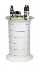Ящики: 15 штук (5 прозрачных), материал – качественный пластик. Полка: пластиковая, с отверстиями. Каркас: крепкая сталь. Колеса: из пластика, вращающиеся. Цвет: белый. Косметологическая тележка CHIROK – оборудование, продуманное для мелочей. Хороший функционал и оригинальное дизайнерское решение делают тележку незаменимым элементом для современного салона. Верхняя крышка идеально подойдет для инструментов, которые должны быть в открытом доступе. Полка с высокими бортами предотвратит случайное падение приспособлений на пол. Для остальных принадлежностей и расходных материалов предназначены 15 вместительных ящиков, которые полностью выдвигаются. Пять прозрачных ящиков разработаны для хранения часто используемых инструментов. За мобильность оборудования CHIROK отвечают шесть маневренных колес. Тележка подойдет даже для небольших салонов и кабинетов за счет компактных размеров. Ящики из пластика выдерживают механические повреждения, чистку моющими и дезинфицирующими средствами. Ящики вращаются вокруг стального профиля. Металл покрыт порошковой краской для предотвращения коррозии. Пластмассовые колеса не повредят пол и предотвратят скольжение тележки. Косметологическая тележка CHIROK поможет оптимизировать рабочий процесс и повысить качество предоставляемых услуг. Универсальный белый цвет подойдет практически для любого интерьера салона красоты.