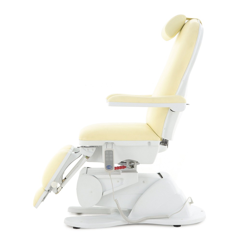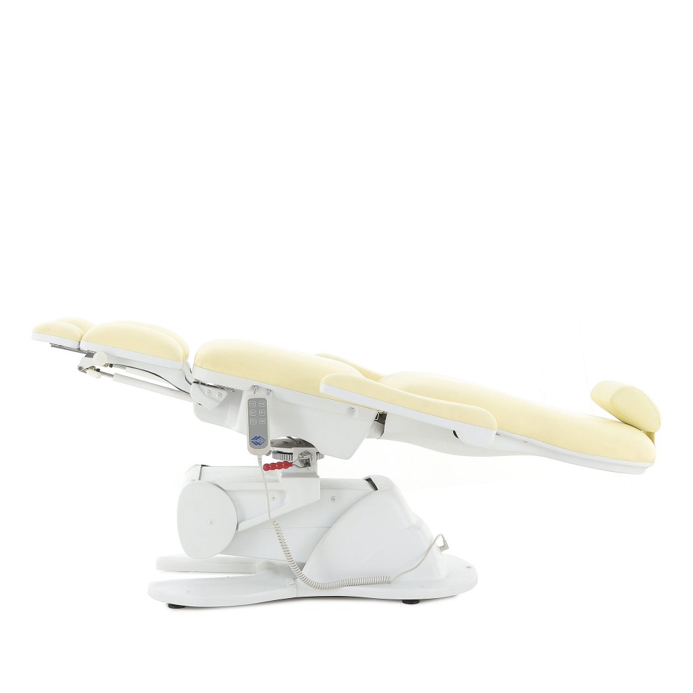 Кресло имеет семь секций, которые можно регулировать по углу наклона и положению. Это позволит подобрать наиболее комфортную позу для конкретной процедуры. Регулировка высоты – при помощи электрического подъемника. Всего кресло имеет три мотора. Максимально возможная нагрузка на конструкцию составляет 180 килограмм.