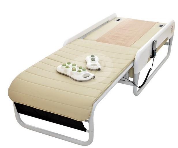 Массажная кровать LOTUS Health Care имеет уникальную раздвижную конструкцию, позволяющую изменять ее габаритные размеры. Благодаря этому кровать можно легко превратить в тумбу и наоборот. При этом все терапевтические функции в любой момент доступны пользователю, в том числе и турмалиновые проекторы с низкочастотным ИК прогревом (длинноволновое излучение).