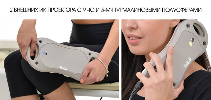 ИК проектор состоит из группы турмалиновых камней и служит для прогрева с помощью длинноволнового ИК излучения. Нагрев турмалинового проектора включается основной кнопкой на панели подключения. Диапазон нагрева варьируется от 30 до 65.