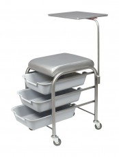 Ящики: прочный пластик. Полка: обтянута экокожей в цвет сиденья. Функциональная и удобная педикюрно-маникюрная стойка MARIN станет отличным дополнением обустройства рабочего кабинета. Надежный металлический каркас имеет антикоррозийное покрытие, благодаря чему не боится воздействия влаги и дезинфицирующих средств. Для производства сиденья применяется практичный износостойкий обивочный материал – экокожа, а также качественный плотный наполнитель – поролон. Купить педикюрно-маникюрную стойку очень выгодно, так как Вы получаете универсальный предмет мебели, включающий в себя удобный стул для мастера и вместительную тележку. Преимущества данной модели: Три выдвижных ящика и полка; Комфортное анатомическое сиденье; Прочный каркас из металла на легко вращающихся колесах. Ящики из ударопрочного пластика выполнены в одном цвете с обивкой мягкого элемента и полки. По необходимости полку можно снять, а также отрегулировать по высоте. Маневренность стойки обеспечивают резиновые колеса в металлическом каркасе. Наличие такой стойки позволит значительно сократить время на обслуживании одного клиента, так как все необходимые для работы инструменты и приборы будут всегда под рукой.