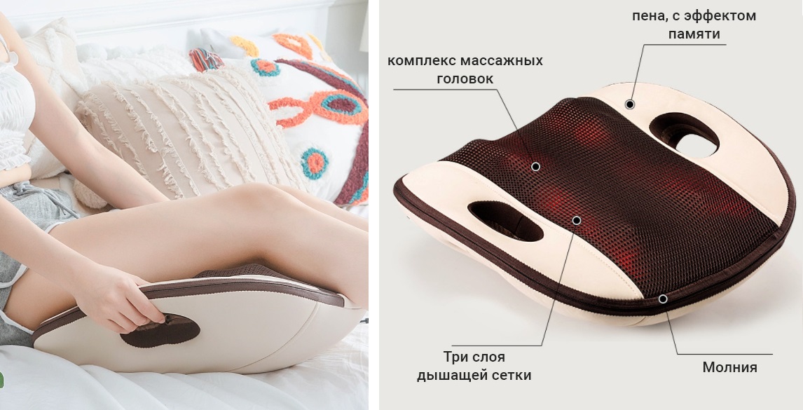 Ее можно использовать к любой части тела (спина, шея и плечи, мышцы ног, пресса), сидя или полулежа, единственное условие, на подушке нельзя переносить весь вес тела, так как это приведет к поломке роликов.