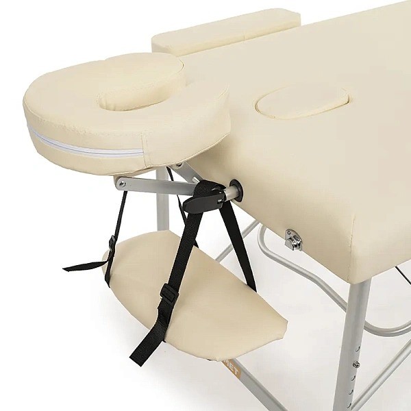 Стол, обладающий элегантным и лаконичным дизайном, выпоненный в кремовом цвете, складывается в чемодан для удобной транспортировки. Оборудован поднимающимся подголовником, снабженным лицевым вырезом, продублированным в изголовье, и подвесом для рук. Виниловое покрытие ложа с пенополиуретановым наполнением выполнено из винилискожи. Каркас из ценной породы дерева - бука позволяет с точки зрения врача-массажиста серьёзные нагрузки на раму, до 270* кг, и использование его в качестве физиотерапевтической кушетки, а с точки зрения пациента и пользователя, возможность получения процедуры на 100% экологичном изделии, обладающего всеми полезными свойствами натурального дерева. Поднимающаяся секция с фиксируемым на растоматах углом наклона позволяет проводить эффективные лимфодренажные сеансы на нижних конечностях, а её применение при уменьшенной длине передних ножек позволит достичь положения тренделенбург и проводить бронхиальный вибромассаж с оптимальным позиционированием грудного отдела**.