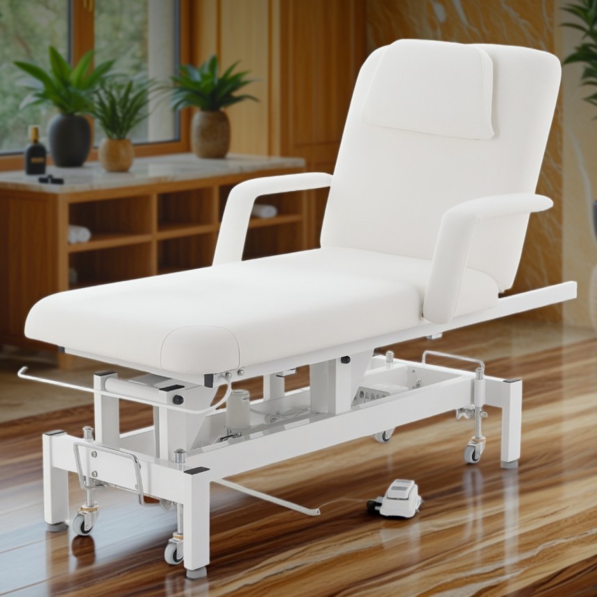 Преимущества для пользователя Удобная работа массажиста: ножной пульт упрощает регулировку высоты без лишних движений. Улучшенный комфорт клиента: мягкие подушки, анатомическое отверстие для лица и регулируемые подлокотники. Надёжность и долговечность: каркас из стальных профилей с эпоксидным покрытием и качественная обивка из ПУ-кожи. Универсальность: подойдёт для массажа, косметологии, СПА-процедур благодаря продуманной конструкции и широкому диапазону настроек. Компактность и мобильность: при необходимости стол легко перекатывается благодаря выдвижным колёсам. Этот многофункциональный электрический массажный стол ММКМ-1 SE2.21.10Д-04 станет оптимальным выбором для салонов красоты, спа-центров и медицинских клиник. Он сочетает практичный дизайн, эргономичную конструкцию и высокие эксплуатационные характеристики, позволяя специалистам с комфортом обслуживать клиентов, а клиентам — расслабляться и получать максимум пользы от процедур.