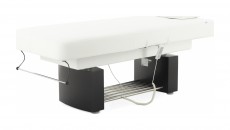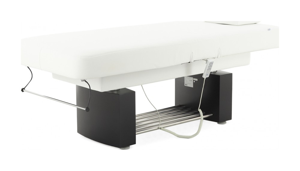 • Основание и приводы подъема ложа встроены в декоративную конструкцию из двух тумб, соединенных полкой из хромированных труб.