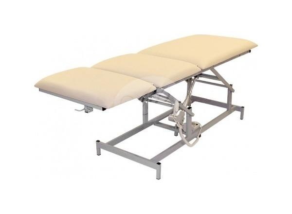 Трёхсекционный стационарный массажный стол с регулировкой по высоте с помощью электропривода и с регулировкой подголовника при помощи газлифта. Без выреза для лица. Также задняя часть стола оснащена механической ступенчатой мануальной регулировкой в положение "ноги вверх". В данной модели используются только импортные комплектующие, и экологически чистый, воздухопроницаемый кожзаменитель. Массажный стол идеально подходит для любых разновидностей массажа, косметологических и других лечебных процедур. Современный дизайн, мощный каркас делает данную модель не только современной, но и очень надёжной. Великолепная устойчивость массажного стола достигнута за счёт мощной нижней металлической рамы и дополнительных стоек. Стол оснащён винтовыми опорами, для выравнивания стола при неровных полах.