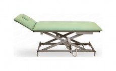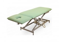 Двухсекционный стационарный массажный стол с регулировкой по высоте с помощью электропривода и с регулировкой подголовника при помощи газлифта. С вырезом для лица. В данной модели используются только импортные комплектующие, и экологически чистый, воздухопроницаемый кожзаменитель. Массажный стол идеально подходит для любых разновидностей массажа, косметологических и других лечебных процедур. Современный дизайн, мощный каркас делает данную модель не только современной, но и очень надёжной. Великолепная устойчивость массажного стола достигнута за счёт мощной нижней металлической рамы и дополнительных стоек. Стол оснащён винтовыми опорами, для выравнивания стола при неровных полах.