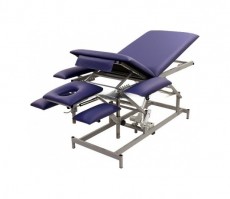 Семисекционный, одномоторный стационарный массажный стол с изменяемой высотой, с регулировкой угла наклона грудной и ножной секции с помощью механического упора, с регулировкой подголовника за счёт газлифта, с механической регулировкой передних и боковых подлокотников. В данной модели используются только импортные комплектующие, и экологически чистый, воздухопроницаемый кожзаменитель. Массажный стол идеально подходит для любых разновидностей массажа, косметологических и других лечебных процедур. Современный дизайн, мощный каркас делает данную модель не только современной, но и очень надёжной. Великолепная устойчивость массажного стола достигнута за счёт мощной нижней металлической рамы и дополнительных стоек. Стол оснащён винтовыми опорами, для выравнивания стола при неровных полах.