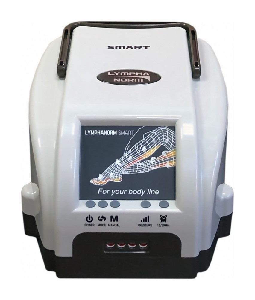 Аппарат для проведения прессотерапии LymphaNorm Smart (Лимфанорм Смарт) — это компактное и мощное устройство, которое позволяет проводить процедуры дома. Он представляет собой компрессор, который подаёт воздух в камеры манжет через шланги по заранее составленной программе.